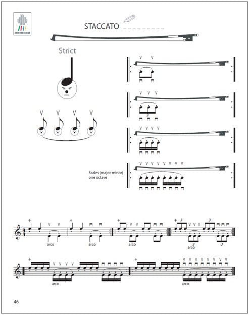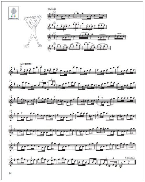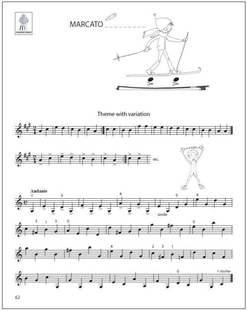 In order to achieve this, the Yellow Pages provide a large variety of pedagogical material on each subject, from which the teacher can select the most appropriate material to meet the needs of each individual student. All new concepts are introduced in first position, using only the most comfortable finger patterns. This simplicity of the left hand enables the child and the teacher to concentrate on the movements of the bow hand. The teacher is nevertheless invited to add more demanding fingerings to encourage position work if it is appropriate for the student. Volumes E (9790550095434) and F (9790550095441) of the Colourstrings Violin ABC focus on the development of left hand technique, whereas the Yellow Pages focuses on the movements of the bow. It is therefore advisable for teachers to use the Yellow Pages at the same time as Volumes E and F.