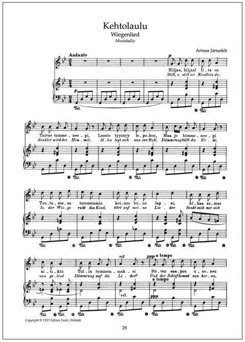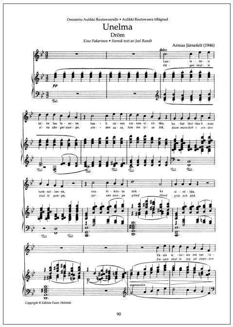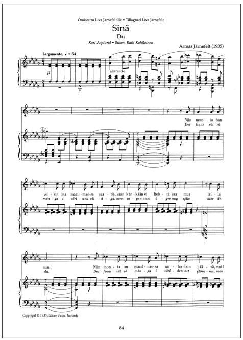 The folk-like elements of his youthful songs were in time joined by Impressionistic and in places even Expressionistic timbres. This collection is edited by Matti Tuloisela.