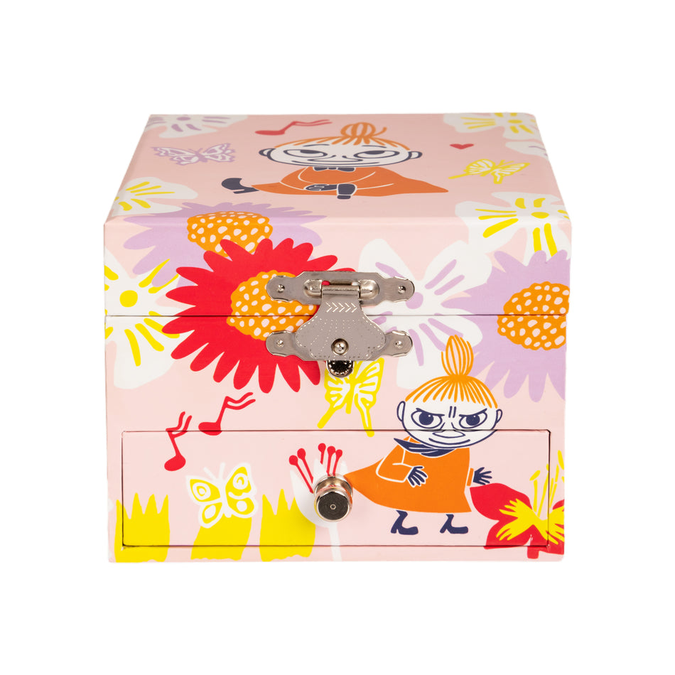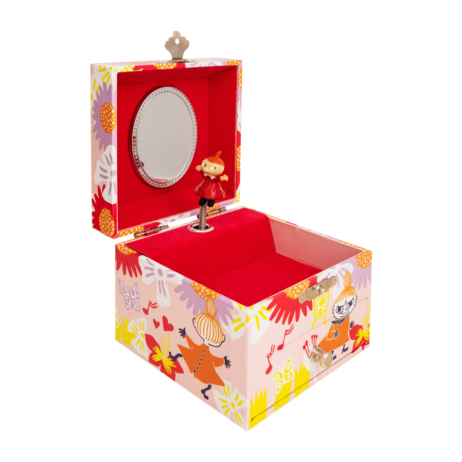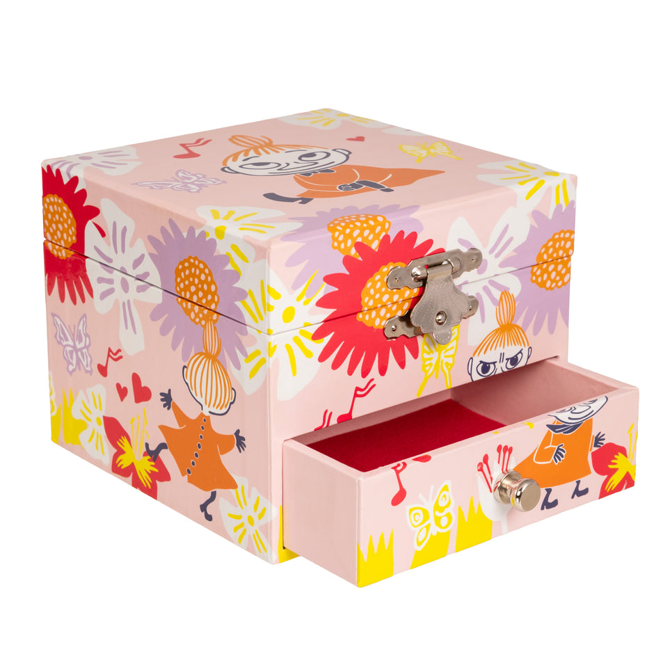 Soiva pinkki korurasia, koristeltu Pikku Myyn ja perhosten kuvilla. Edessä aukeava korulaatikko. Lue lisää