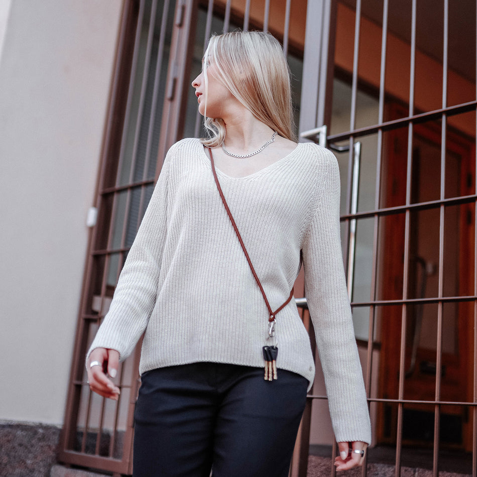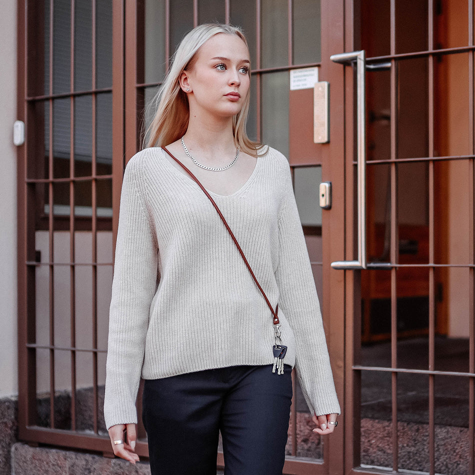 Minimalistinen hirvennahasta valmistettu avainnauha. Nauhassa muovinen turvalukko. Nauhaan on helppo kiinnittää ja irrottaa avaimet. Lue lisää