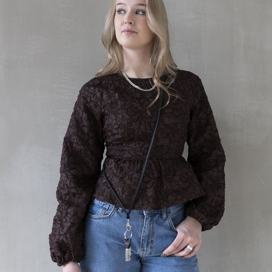 Avainkaulanauha Miiko pitkä ruskea hirvennahkaa pituus n. 124 cm