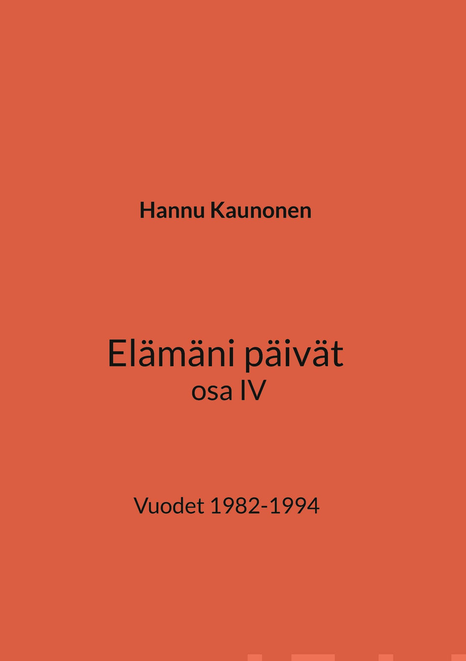 Elämäni päivät osa IV käsittää päiväkirjan muotoisesti elämäni ajanjakson vuosilta 1982-1994.