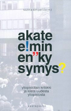 Tutkimus ja korkeakoulutus eivät ole irrallisia saarekkeita taloudellisten voimien ja uusliberalismin hengen ohjailemassa ajassa. "Tehostaminen" ja "kehittäminen" ovat tuttua puuhaa koko yhteiskunnassa: työelämässä, koululaitoksessa, terveyden- ja vanhustenhuollossa. Kenen hyödyksi ja miten sitä tehdään? Millaista elämää tavoittelemme ja millaisia yhteiskunnallisia, teknisiä ja ekologisia ratkaisuja se edellyttää? Tarvitaanko yliopistoja yhä yhteiskunnan kriittiseen itsearviointiin ja kulttuurin luovaan uudistamiseen? Yliopistojen tulevaisuus ei ole vain akateeminen kysymys. Se koskettaa perustavalla tavalla yhteiskunnan ja kulttuurin suuntaa.