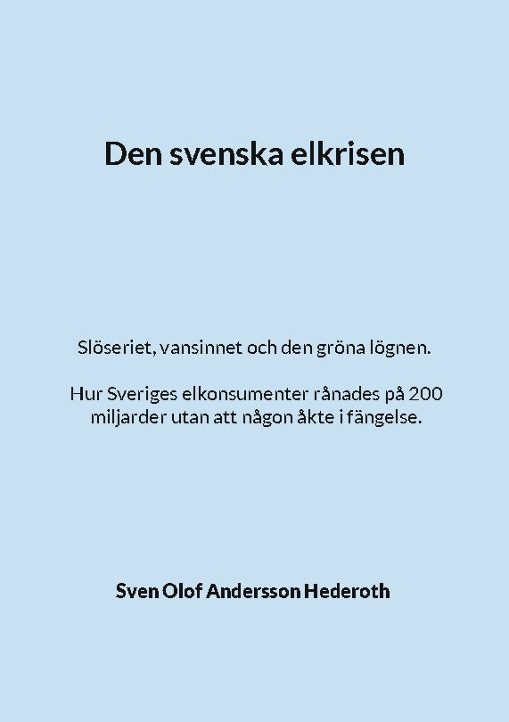 Hur kom det sig att svensk elförsörjning på bara ett par år gick från att ha varit oproblematisk och billig till en situation som präglas av brist och höga priser? Hur kunde man lägga ner kärnkraftverk fastän det fanns planer på ökad elanvändning? Är verkligen vindkraften så bra som de säger? Vilket kraftslag ger de lägsta elpriserna? Vad har utländskt ägande fått för effekter på elförsörjningen? Vad får elkrisen för konsekvenser?