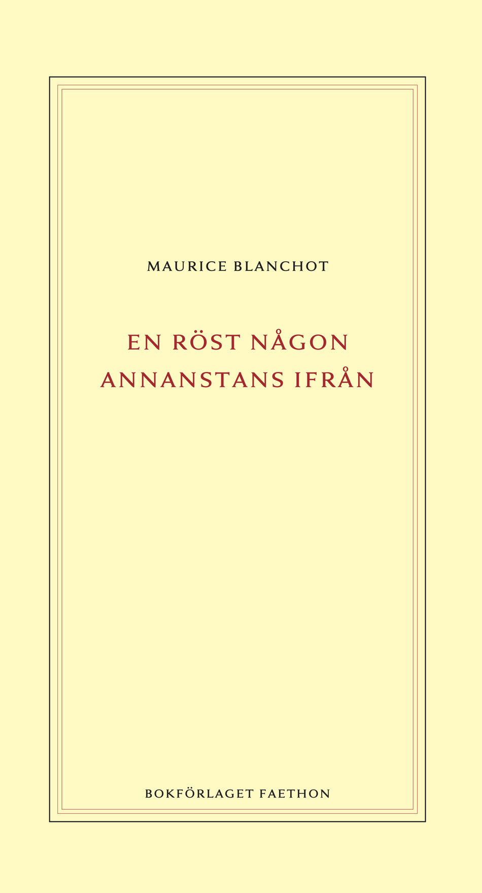 En röst någon annanstans ifrån samlar Maurice Blanchots essäer om Louis-René des Fôrets, René Char, Paul Celan och Michel Foucault. Mästerligt översatta av Thomas Andersson. Lue lisää