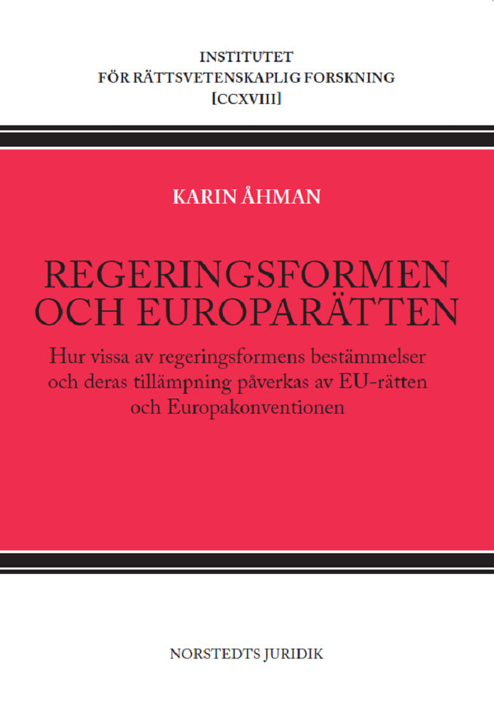 inkorporerades i svensk rätt. Både EU-rätten och konventionsrätten (europarätten) har utövat inflytande över hur den rättsliga regleringen utformas och hur svensk rätt tillämpas. Detta gäller för i stort sett samtliga rättsområden med några undantag. I boken besvaras tre frågor: Hur har innehållet i regeringsformen påverkats, både uttryckligt och underförstått? Hur har den juridiska metoden och rättstillämpningen påverkats avseende frågor som rör regeringsformen? Vad har denna påverkan inneburit för den svenska författningskulturen?