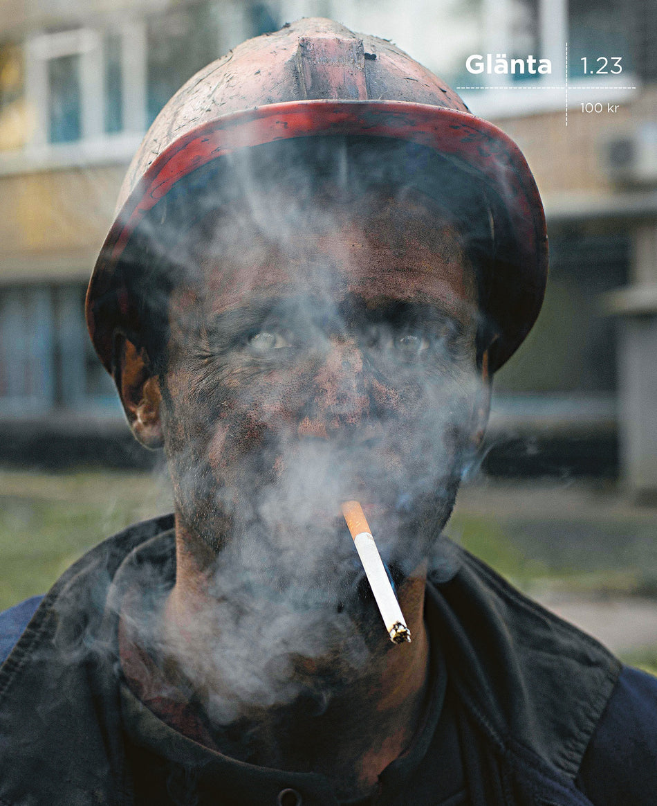 Omslaget pryds av Jevgenija Belorusets foto av en gruvarbetare i Donbass 2015. Det är också ett av de tio foton som Katja Petrowskaja skriver om i numret.