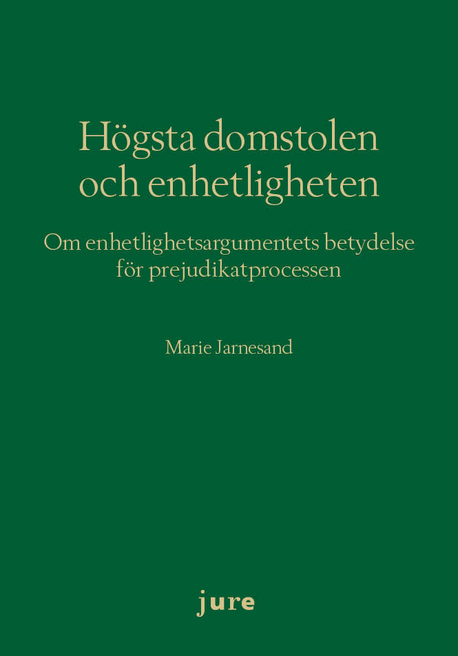 Argumentet enhetlighet i rättstillämpningen är centralt för förståelsen av Högsta domstolens roll i instansordningen. Enhetlighetsargumentet förs fram i stort sett alla sammanhang där Högsta domstolen som prejudikatinstans diskuteras eller formeras. Trots att det saknas en tydlig gemensam bild av vad som läggs i själva innebörden av enhetlighet, förefaller det råda konsensus om att enhetlighet i rättstillämpningen är något önskvärt. Den här avhandlingen undersöker enhetlighetsargumentet och dess utveckling och betydelse för Högsta domstolen som prejudikatinstans. En preliminär utgångspunkt är att enhetlighetsargumentet kanske inte är så enhetligt som det vid en första anblick framstår. Det processuella landskapet har genomgått stora förändringar sedan enhetlighetsargumentet först tog plats i det processrättsliga samtalet. Det skulle kunna tala för att det kan finnas fler nyanser av enhetlighetsargumentet i den processuella utvecklingen och i det processuella regelverket som omgärdar Högsta domstolen som prejudikatinstans. Vad som synes vara samma argument, kan i själva verket dölja nyanser, olika lager eller till och med motsättningar, som kan bringas i ljuset genom att studera enhetlighetsargumentet närmare i de olika sammanhang det förekommer. Genom avhandlingen skrivs prejudikatprocessens utveckling, problemställningar och särdrag fram i ljuset av anspråket om enhetlighet i rättstillämpningen. Marie Jarnesand är jurist och verksam som forskare och lärare vid Juridiska institutionen, Stockholms universitet. Boken är hennes doktorsavhandling i processrätt.