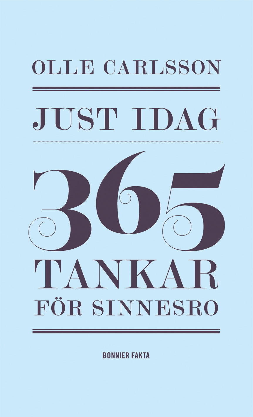 ”Om du verkligen låter varma tankar av tro, hopp och kärlek sjunka in i ditt medvetande på morgonen så kommer de att påverka din dag.” I sin nya bok, Just idag, har Olle Carlsson, präst i Svenska kyrkan, samlat 365 tankar för sinnesro. En kort text som avslutas med en fråga, för varje enskild dag... Lue lisää