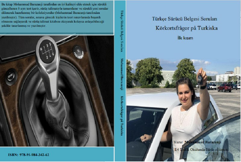 Körkortsfrågor på Turkiska del 1 är lättläst och ger en tydlig information om vad som gäller i trafiken. Den är indelad i kapitel med olika ämnesområden som t ex, trafikregler, försäkringar, bilens delar, olyckor och första hjälpen. I boken hittar du allt du behöver för att fixa teoriprovet. Körkortsfrågor på Turkiska del 1 är skriven av Mohammad Barazanji som driver E4ans trafikskola i Malmö. Mohammad har jobbat inom trafikskolebranschen sedan 2001 och brinner för körkortsutbildning. Under sin tid som trafiklärare har han märkt att det finns ett stort behov för en körkortsbok på olika språk. Elever som inte har Svenska som modersmål har oftare svårt för körkortsteorin. För att hjälpa dessa elever har Mohammad skrivet Körkortsfrågor på Turkiska del 1 Boken har är mycket omtyckt och är i dagsläget nästan en standardbok inom körkortsutbildning för elever med Turkiska som modersmål.