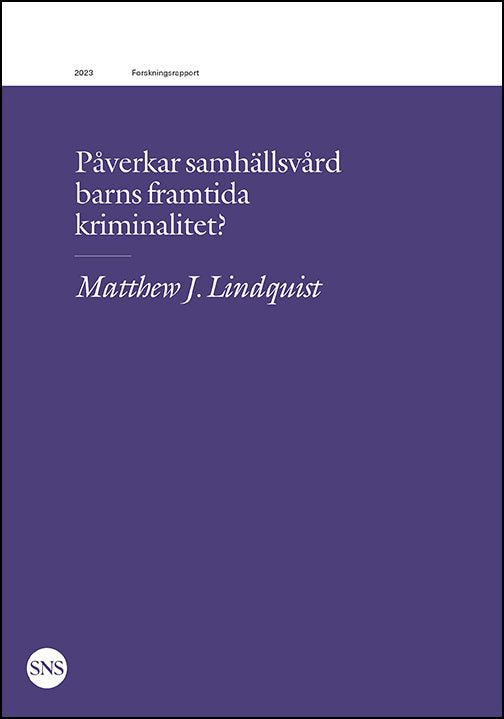 Att skilja ett barn från sin familj är ett stort ingrepp som kräver noggranna övervägningar mellan risker och fördelar för familjen och barnet. Barn som inte kan bo kvar hemma på grund av missförhållanden eller sitt eget riskfyllda beteende kan omhändertas av samhället och placeras då ofta i familjehem. I rapporten sammanställer nationalekonomen Matthew Lindquist forskning om vilka effekter samhällsvård av barn har på deras eventuella kriminella beteende senare i livet. Utifrån lärdomar från forskningen ges rekommendationer för en förbättrad samhällsvård som skulle gynna både de som vårdas och samhället i stort. Matthew J. Lindquist är professor i nationalekonomi vid Institutet för social forskning (SOFI) vid Stockholms universitet. Rapporten är en del i SNS forskningsprojekt Brottslighet och samhälle.