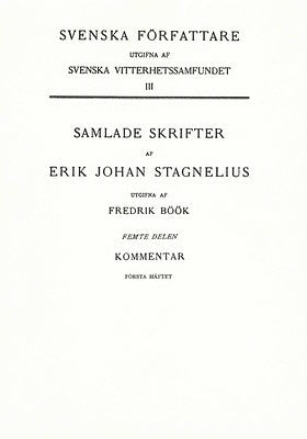Del fem (som består av tre häften) av Fredrik Bööks textkritiska utgåva av Stagnelius Samlade skrifter innehåller kommentarer. Lue lisää