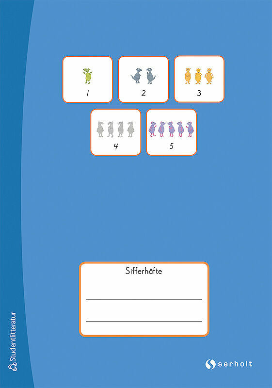 Ett sifferhäfte där man tränar att skriva siffrorna från 0 till 9. Första och sista siffran på raden är förtryckt till stöd för både höger- och vänsterhänta. Små punkter markerar var man börjar skriva siffran. Till varje siffra finns en bild att färglägga.