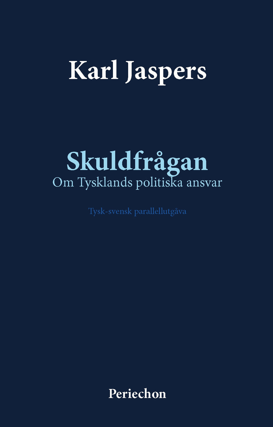 I Skuldfrågan erbjuder Jaspers oss ett utdrag ur en serie föreläsningar som han höll i Heidelberg vintern 1945-1946. Det nationalsocialistiska Tysklands brott hade då för första gången blivit uppenbara för hela folket. Jaspers försökte tänka - obevekligt och utan självgodhet - när skräck och skam förvandlades till förvirring, tystnad, dold ilska. Detta ställningstagande av Karl Jaspers var ett första svar på segermakternas tes om tysk kollektiv skuld. Denna är en tvåspråkig utgåva med den tyska originaltexten och en ny svensk översättning (2024) av Rebecca Schlottau. Den första översättningen utfördes av filosofen Alf Ahlberg och gavs ut av förlaget Natur & Kultur år 1947. Karl Jaspers, född den 23 februari 1883 i Oldenburg och död den 26 februari 1969 i Basel, studerade juridik, medicin och psykologi. 1916 blev han professor i psykologi och 5 år senare i filosofi vid Heidelbergs universitet. 1937 avsattes han från ämbetet eftersom hans fru Gertrud Mayer var judinna. Han återinsattes 1945. Bland hans mest kända verk finns Allgemeine Psychopathologie, 1913, Psychologie der Weltanschauungen, 1919, Philosphie, 1932, och Vom Ursprung und Ziel des Geschichte, 1949. Han var en stark röst i den tyska samhällsdebatten, vilket föreliggande verk är ett exempel på.