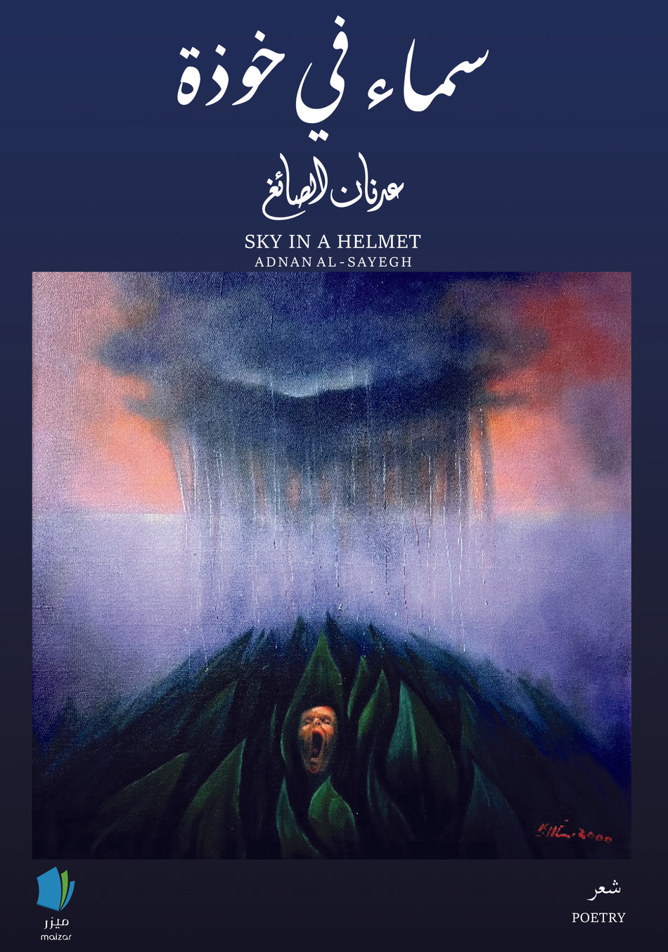 "Himmel i en hjälm"Av Adnan Al-Sayegh Al-Sayegh, i sin diktsamling "Himmel i en hjälm", skriver om krig, dess tragedier, smärta och katastrofer, om hjälmarnas fall, om askan som täcker städer och själar och lämnar djupa sår i människan och nationen: "En hjälm föll...Jag rörde vid platsen för håle... Lue lisää