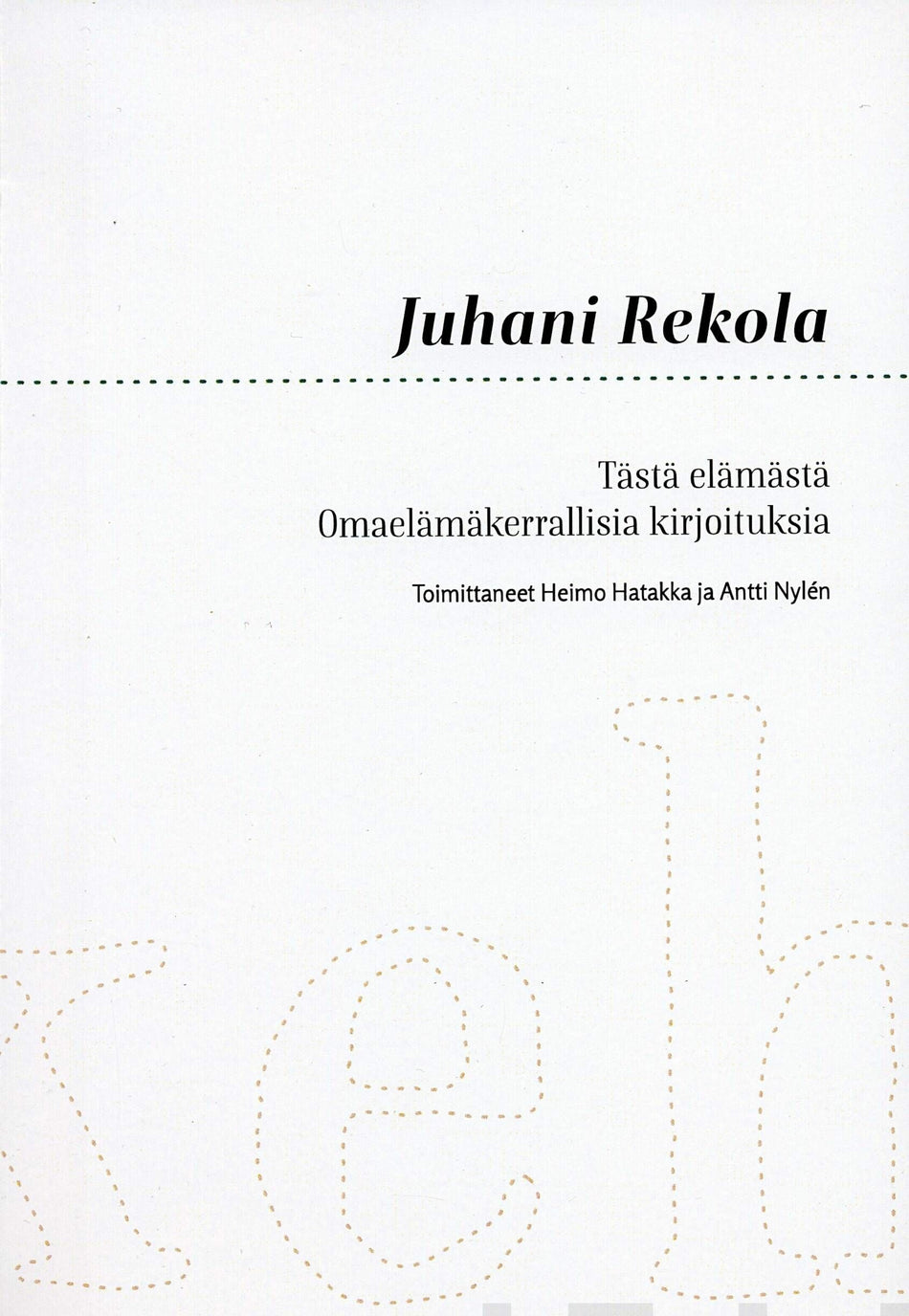 Käsillä oleva kokoelma on koottu esseistin kirjallisesta jäämistöstä. Heimo Hatakan ja Antti Nylénin toimittama Tästä elämästä on Rekolan lukijoita palveleva pieni tausta-aineisto. Se auttaa näkemään, millaisen elämän keskellä esseet syntyivät.