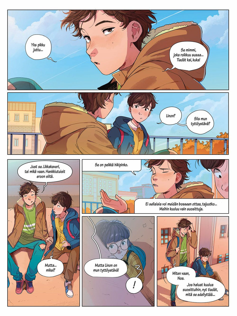 Linon ja Garance ratkovat rakkauden arvoitusta. Garancen vanhempien liitto rakoilee, kun taas Linon on korviaan myöten rakastunut ihanaan Noaan. Kestääkö rakkaus? Upeasti kuvitettua sarjakuvakerrontaa koulumaailmasta kaikille romantiikannälkäisille! Lue lisää