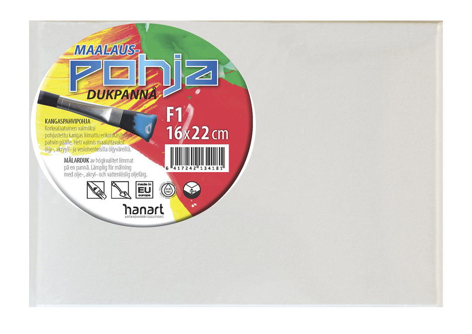 POHJA-kangaspahvipohja on kätevä, kevyt maalausvalmis alusta, joissa korkealaatuinen valmiiksi pohjustettu kangas on liimattu erikoiskäsitellyn pahvin päälle. Pohja on heti valmis maalattavaksi öljy-, akryyli- ja vesiohenteisilla öljyväreillä. Pohjan paksuus on 3mm. Pohjat on valmistettu Euroopassa. Lue lisää