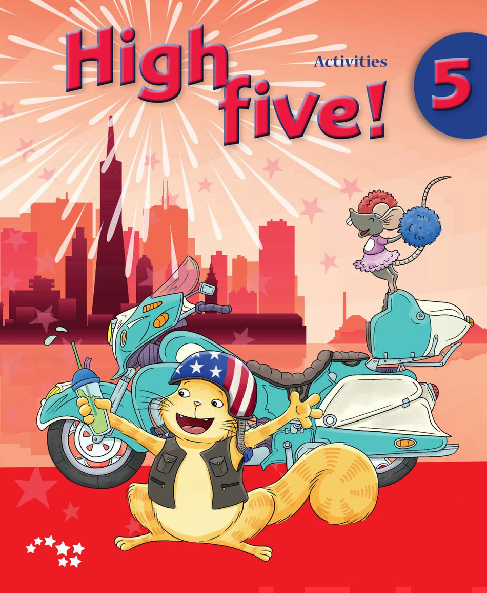 High five! 5 Activities noudattaa aiemmista osista tuttua selkeää tehtäväkirjan rakennetta: ensin harjoitellaan kappaleen ydinsanoja ja -fraaseja, sitten tutkitaan kuvaa ja tekstiä. Ääntämistä ja rakenteita harjoitellaan monipuolisesti. Viidennellä luokalla itsearviointi ja oman opiskelun suunnittelu korostuvat entisestään.