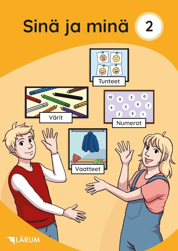 I den andra arbetsboken, Sinä ja minä 2, tränas ord som hör ihop med känslor, kläder, siffror och färger.