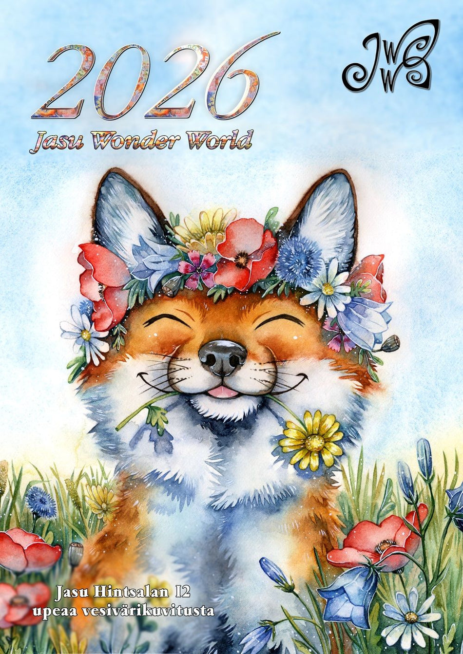 Jasu Wonder World 2026 perhekalenteri sisältää Jasu Hintsalan 12 ihastuttavaa vesivärikuvitusta. 2026 vuoden teemana ovat ketut! Lue lisää