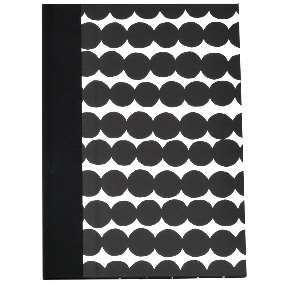 Muistikirja kangasselkämys Marimekko A5/100 kovakantinen blancosivut Räsymatto mustavalkoinen