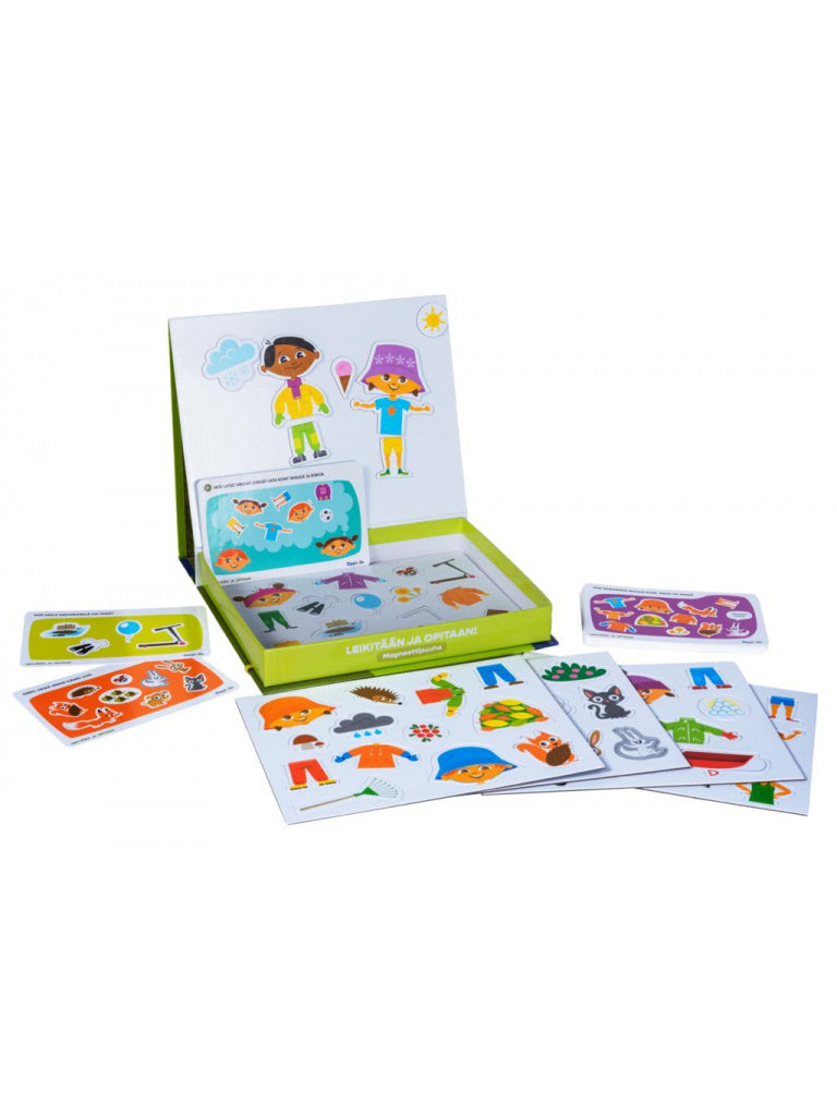 Löydätkö lapsille vaatteet ja lelut rantaretkelle? Tunnistatko syksyiset asiat kuvasta? Entä mitkä eläimet piileskelevät talvisessa metsässä? Iloiset magneettipuuhat innostavat lasta leikkimään ja oivaltamaan! Tehtävissä tutustutaan eri vuodenaikoihin ja säätiloihin pukeutumisen, leikkien, eläint... Lue lisää