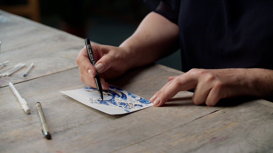 Luo taideteos vain kolmella kynällä! QR-koodilla ilmainen tutorial -opetusvideo! Tässä luovassa pakkauksessa saat Sakuran Pigma Micron kynän, Gelly roll geelikynän ja Koi sivellinkynän sekä 3 mixed media A6-paperiarkkia. Lajitelman QR-koodilla saat ohjeet kuinka piirrät aiheen "Great Wave of Kanagawa". Inspiroidu lajitelman äärellä ja katso mitä kaikkea saa luotua vain kolmella kynällä!