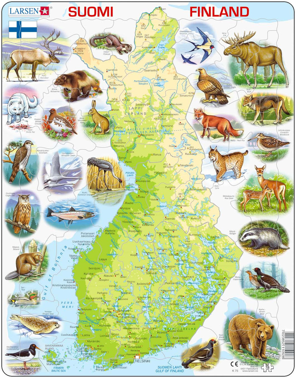 Palapeli Larsen Suomen kartta ja eläimiä Maxi