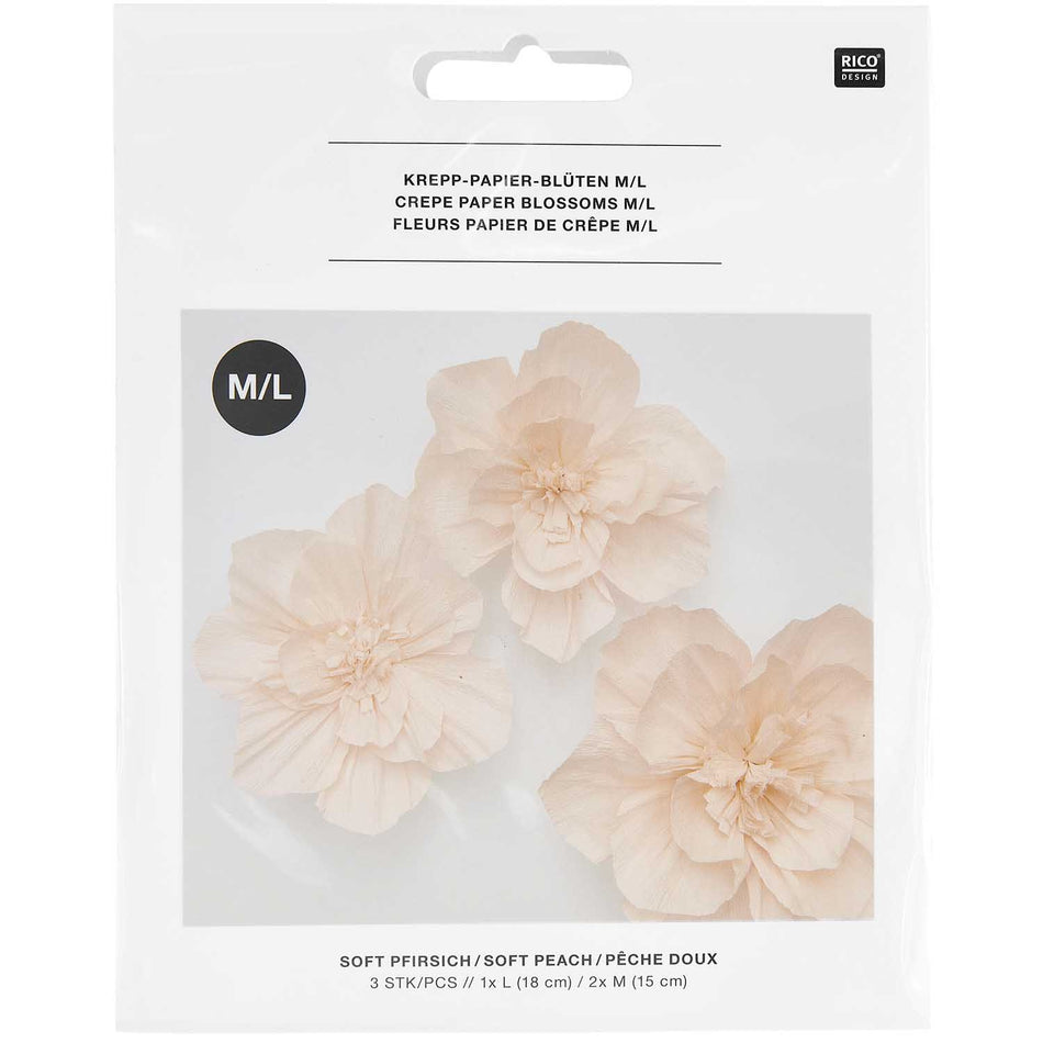 Kreppipaperikukat 3 kpl Soft Peach 2x15cm 1x18cm