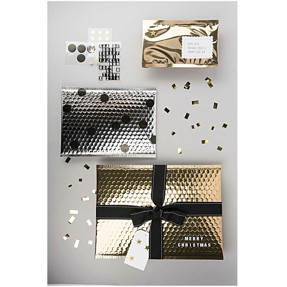 Juhlava kullanvärinen kimalle-kuplapussi vie tuotteesi ehjänä perille. Sisämitta 23x34cm. Lue lisää