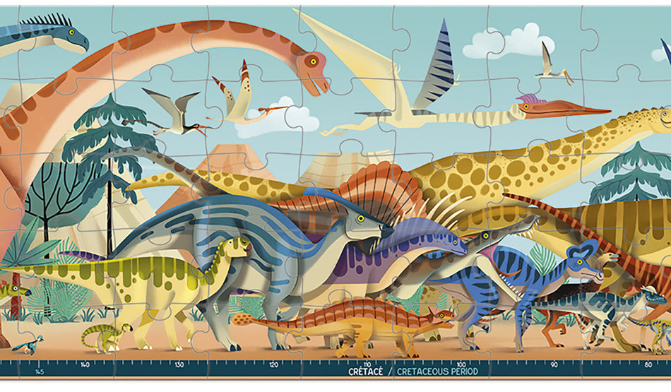 Esihistoriallinen maisema värikkäine dinosauruksineen rakentuu pala palalta. Lue lisää