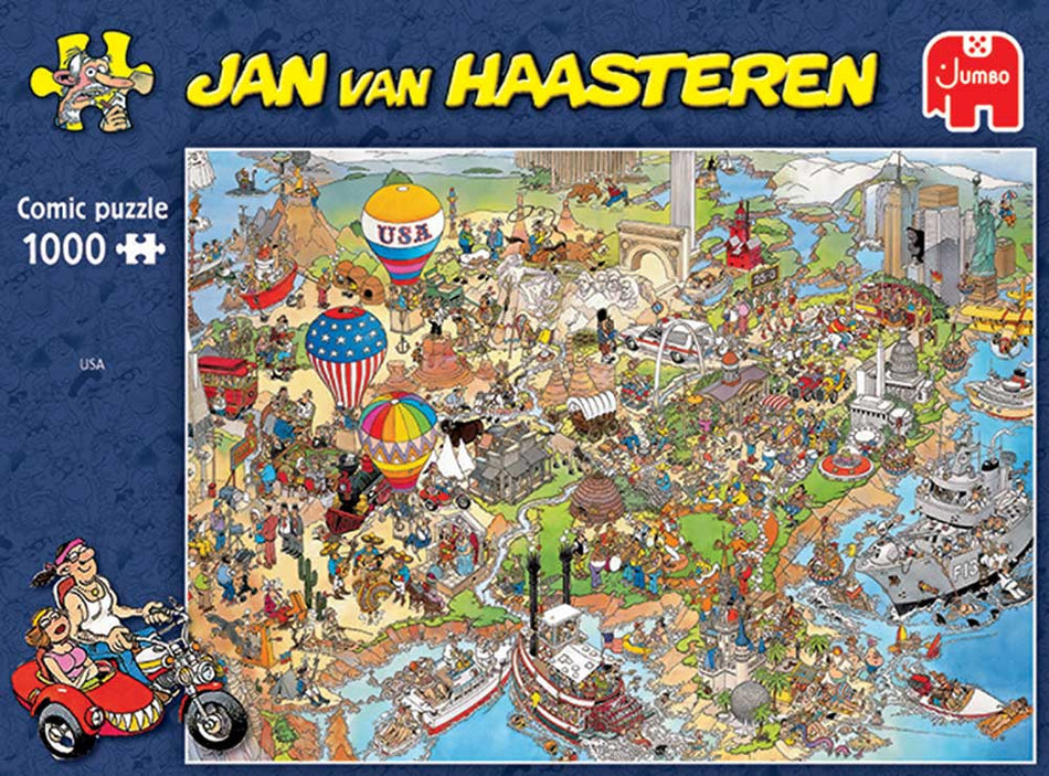 Suositun Jan van Haasteren-palapelisarjan humoristinen palapeli, USA 1000 palaa. Valmiin palapelin koko 69 x 49 cm Lue lisää