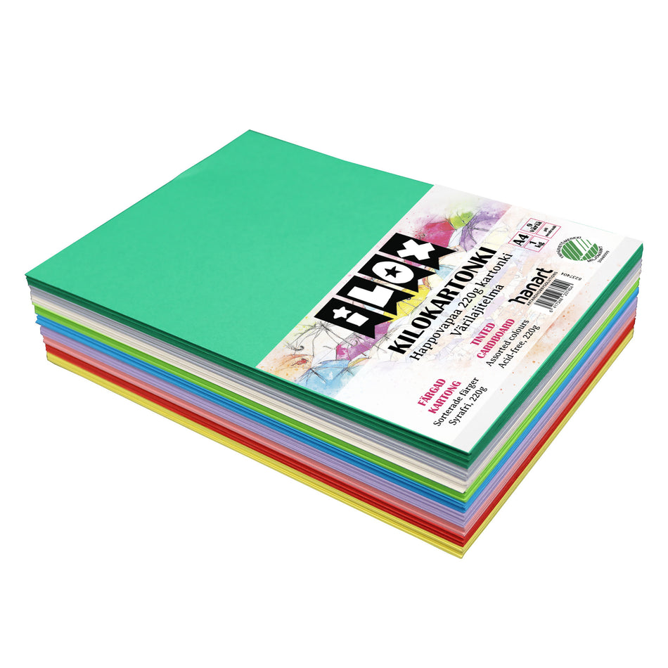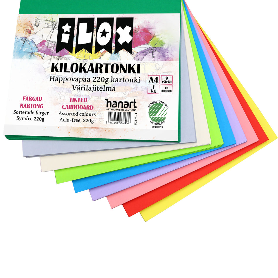 Kartonkilajitelma A4/80 arkkia, 220g, 9 väriä, 1kg