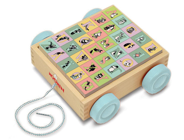 Upea puinen Muumi-lelu! Matala puinen vaunu, jossa pastellinvihreät pyörät ja vetonaru. Lue lisää