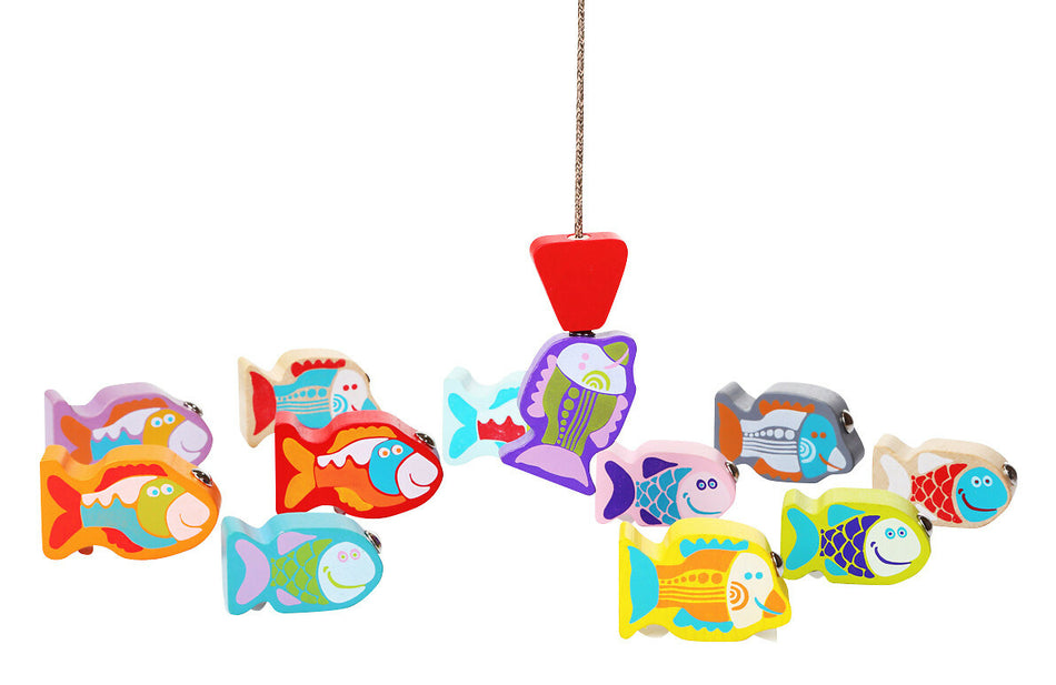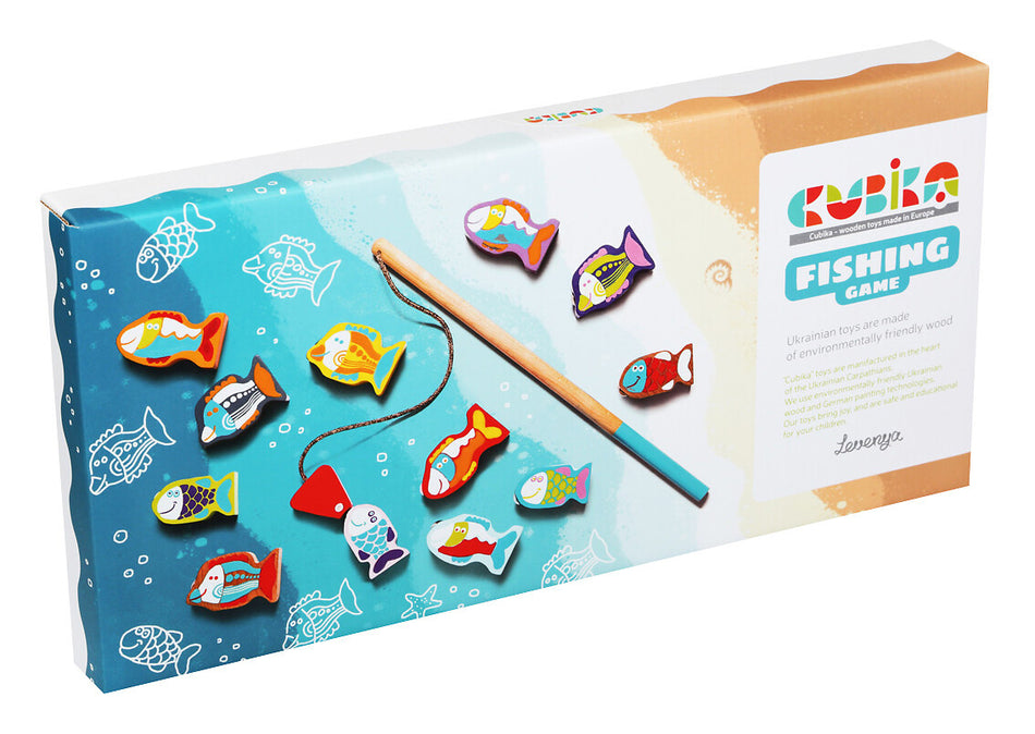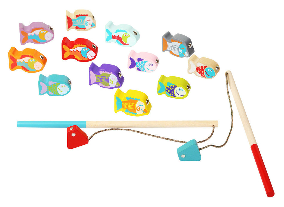Puinen kalastuspeli, jossa 12 kalaa ja 2 onkea. Ongen pituus 17 cm. Ikäsuositus: 2+. Lue lisää