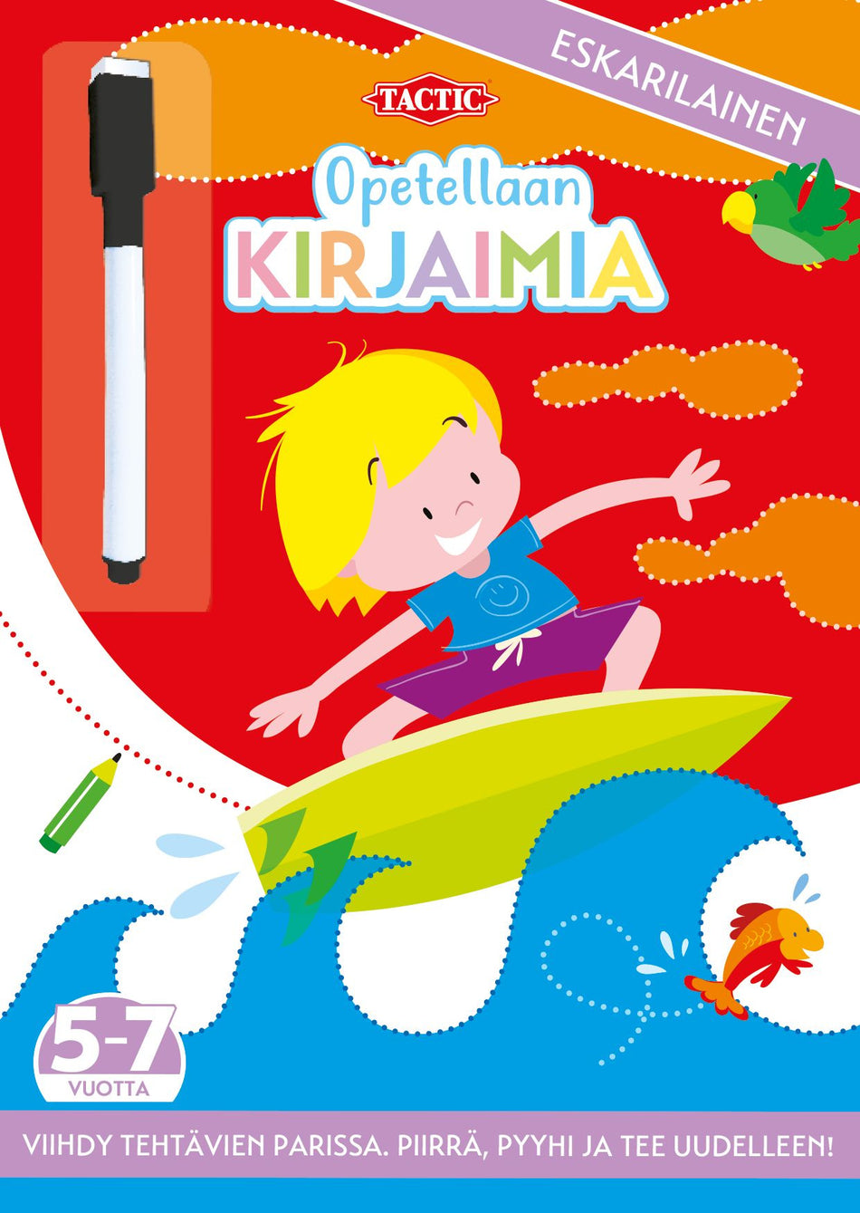 Opetellaan kirjainmuotoja vaiheittain. Löydetään mallia seuraamalla oikeat liikeradat ja edetään kirjainten kirjoittamiseen. Runsas määrä innostavaa tekemistä kehittää kynänkäyttötaitoja leikiten. Mukana pyyhittävä tussi ja pyyhin. Harjoittele uudelleen ja uudelleen! Lue lisää