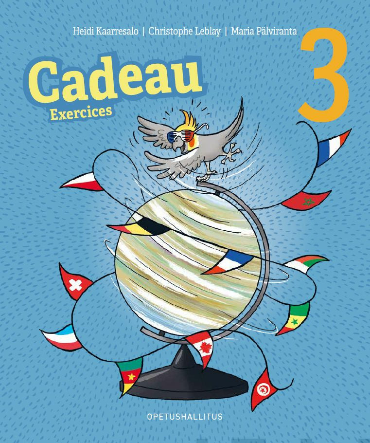 Cadeau 3 -harjoituskirja sisältää runsaasti erilaisia kuuntelu- ja tekstinymmärtämisharjoituksia. Kirja tukee oppilasta suullisen kielitaidon kehittämisessä ja harjoittaa kirjoittamista monipuolisesti. Toiminnallisuus on vahvasti mukana myös Cadeau 3 -harjoituskirjassa. Aiempien osien tapaan kielitietoasioita käsitellään kevennetysti ja kuvamuistia tukevien Chez Choco -sivujen avulla. Jokainen luku loppuu tuttuun tapaan itse- ja vertaisarviointisivuun. Harjoituskirjan lopussa on kooste kielitietoasioista, joita on käsitelty Cadeau 1 - ja 2 -oppikirjoissa. Tiedonhakua harjoitellaan systemaattisesti mielenkiintoisten aiheiden avulla. Sanastoa, kuullun ymmärtämistä, kirjoittamista ja kielitietoasioita voi harjoitella myös digiharjoitusten avulla niin yksin kotona kuin koko luokan kesken.