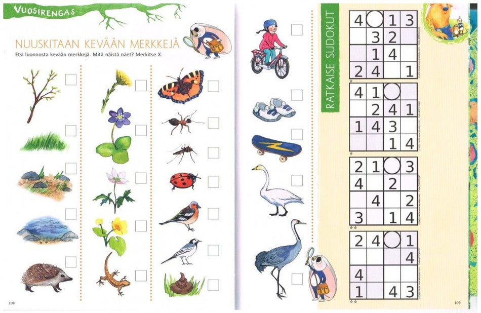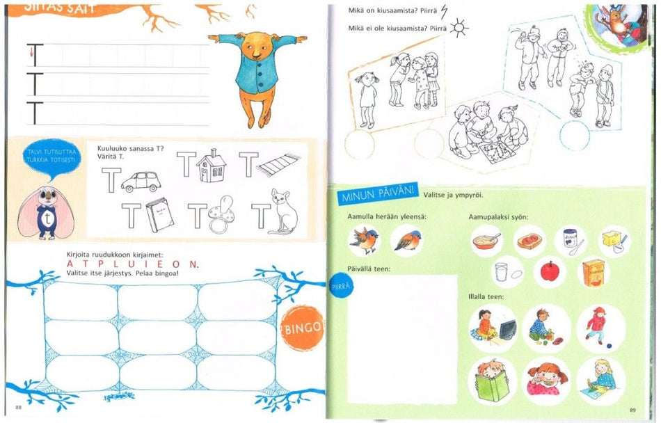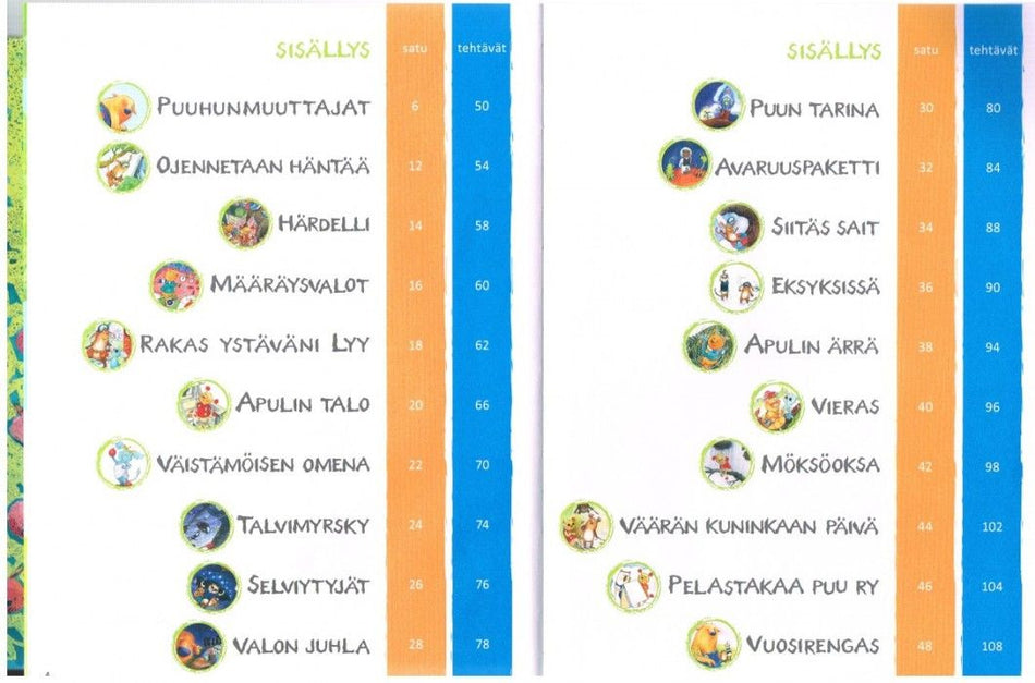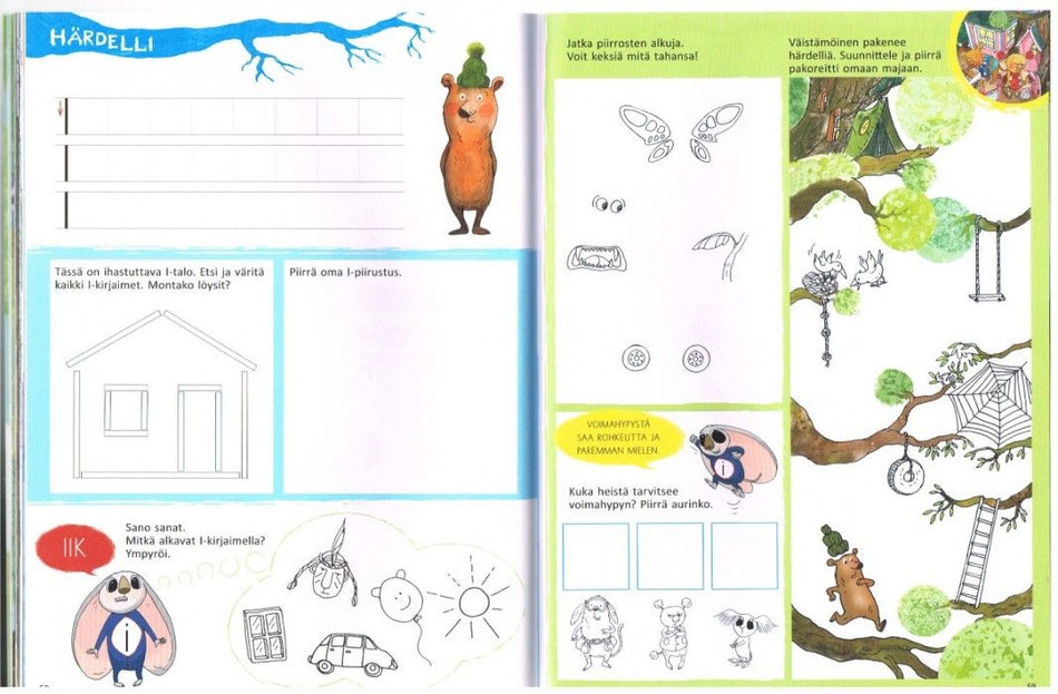 Monipuolisissa tehtävissä jatketaan sadun teemaa. Kielellisiä ja matemaattisia valmiuksia kehittävien tehtävien rinnalla materiaalissa on uudenlaisia tehtävätyyppejä, joissa lapset saavat keksiä ja tehdä yhdessä. Uutta ovat myös tunnetaitotehtävät. Sähköiseen materiaaliin on koottu eriyttäviä tehtäviä erilaisille oppijoille.