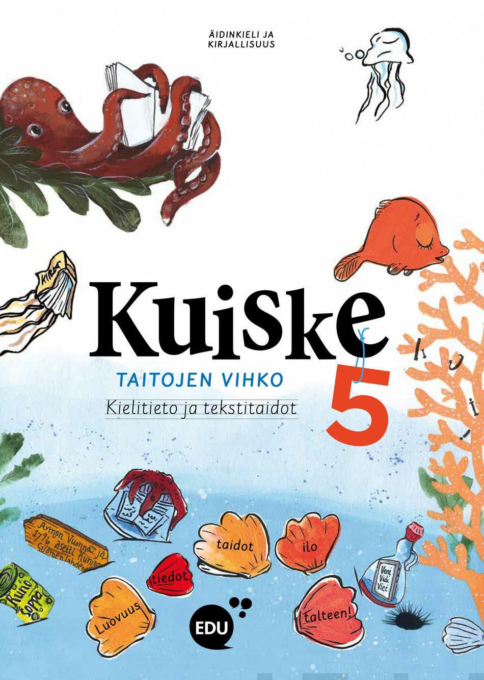 Kuiske 5 Taitojen vihko on ainutlaatuinen osa Kuiske-perhettä. Se on laadukas, tutkivaa otetta korostava tehtäväkirja, joka kehittää oppilaan taitoja tehdä havaintoja kielestä sekä ymmärtää ja tuottaa erilaisia tekstejä.