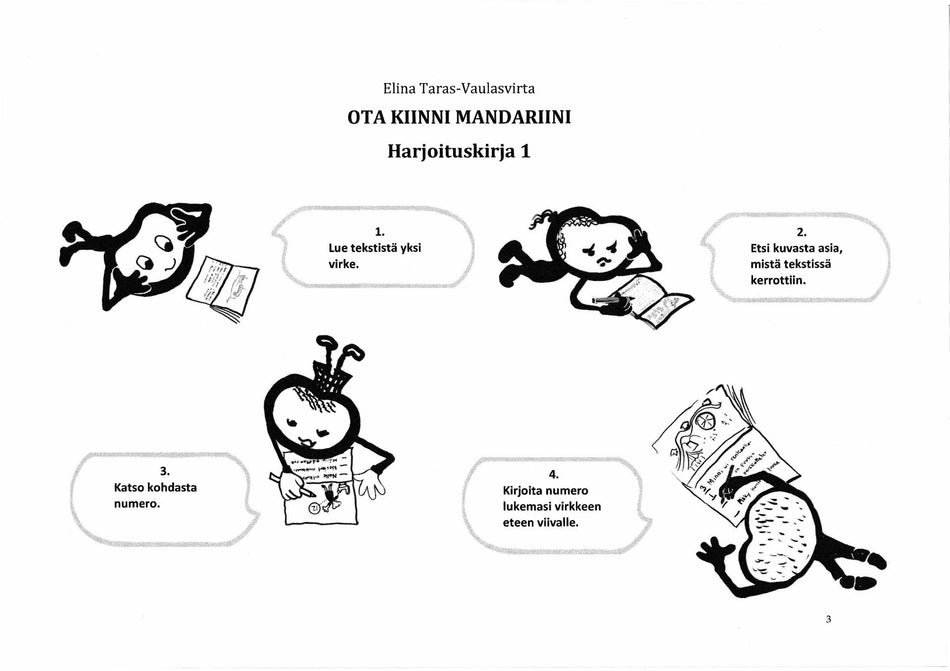 Harjoituskirja 1 sisältää 12 kuvasivua, joissa kullakin sivulla on 19-54 tehtävää.