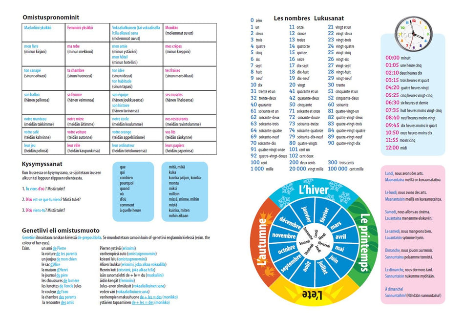 Peruskoulun uuden opetussuunnitelman Ranska "pähkinänkuoressa". 7 värikästä sivua lisätty A5/40 proPISA-vihkoon. Ainetta kuvaava kansi. Kuvat ja kaaviot auttavat hahmottamaan kokonaisuuksia ja parantavat muistamista.Sisältää mm: kuukaudet, vuodenajat, viikonpäivät, kouluaineet, sää, lukusanat,ter... Lue lisää