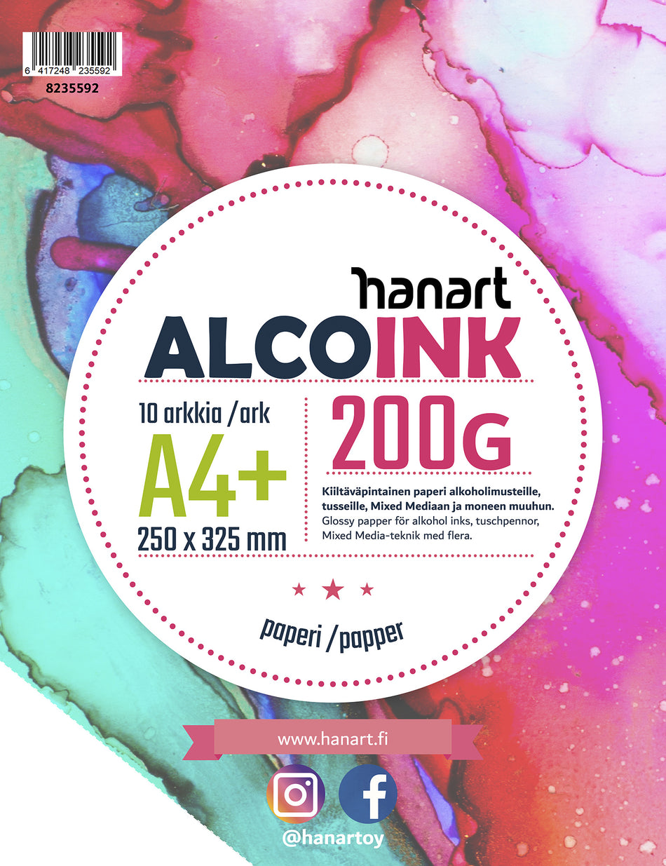 Alkoholimustepaperi 25x32,5cm/10kpl AlcoInk 200g alkoholimusteelle