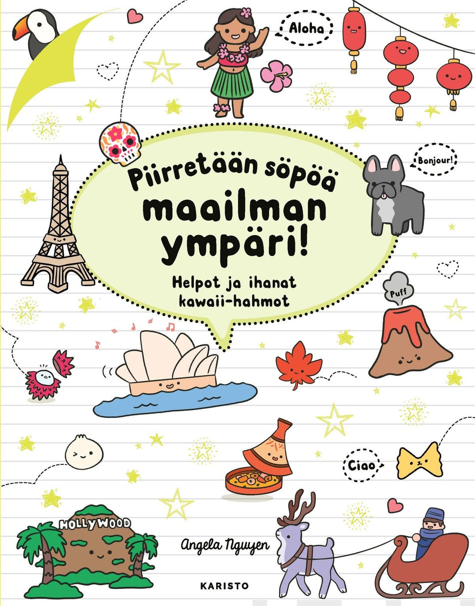 Söpö piirustusopas näyttää vaihe vaiheelta, miten piirrät kaikenlaisia asioita eri puolilta maailmaa suositulla japanilaisella piirrostyylillä. Käytännönläheinen kirja auttaa kaikenikäisiä piirtäjiä kokemaan maailman kotoa käsin. Selkeät ohjeet tekevät kawaii-tyylin opettelusta helppoa ja hauskaa: pelkistetään ja pyöristetään muotoja, lisätään iloiset silmät ja suu.