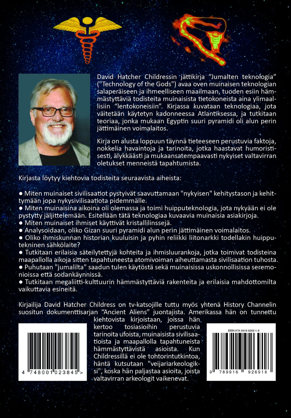 David Hatcher Childressin jättikirja ”Jumalten teknologia” ("Technology of the Gods") avaa oven muinaisen teknologian salaperäiseen ja ihmeelliseen maailmaan, tuoden esiin hämmästyttäviä todisteita muinaisista tietokoneista aina ylimaallisiin “lentokoneisiin”.