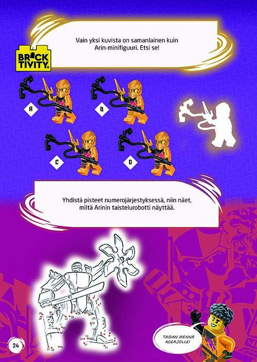 Uusi ninja Arin seikkailee LEGO Ninjago -puuhakirjassa. Opi uutta Arinista sekä hänen ystävistään ja vihollisistaan! Kirja sisältää puuhatehtävien lisäksi tarinan ja sarjakuvasivuja. Mukana koottava Arin-legohahmo ympäristöystävällisessä pakkauksessa. Lue lisää