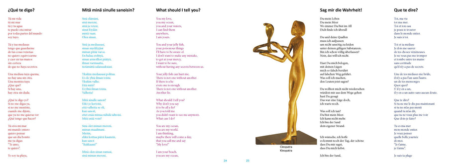 jossain määrin saaneet inspiraationsa teoksen runoista. Kaikki kirjan runot ovat espanjaksi, suomeksi, englanniksi, saksaksi ja ranskaksi. Runot liittyvät kirjoittajan kokemuksiin, sairastumiseen, rakkauteen, luontoon, sotaan, ilmastonmuutokseen ja erilaisiin hänen kokemiinsa voimakkaisiin tunteisiin.