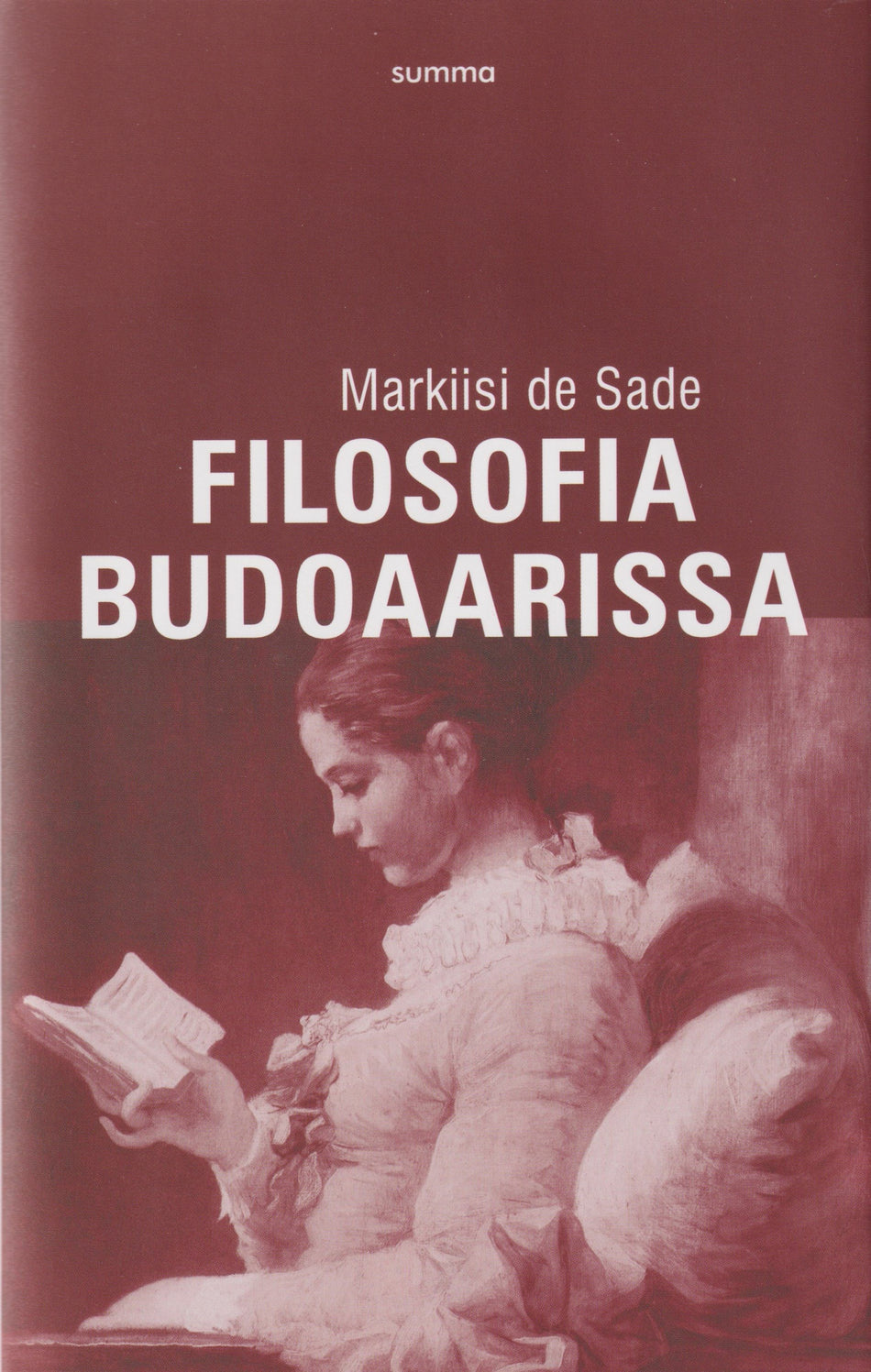 Markiisi de Saden (1740-1814) Filosofia budoaarissa julkaistiin ensimmäisen kerran anonyymisti Ranskan vallankumouksen myllerryksissä vuonna 1795. Vain vuotta aiemmin Sade oli Suuren terrorin kukistuttua täpärästi välttynyt giljotiinilta, mutta paitsi Robespierren myös Ancien Régimen sekä Napoleonin Ranskassa Sade istui pitkiä aikoja vankilaan tai mielisairaalaan suljettuna – yhteensä lähes 30 vuotta elämästään.