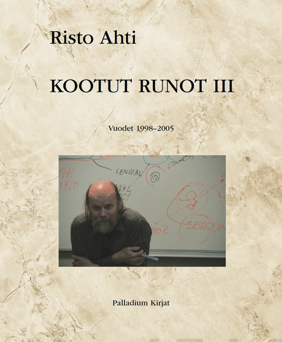 ”Ahti on anarkisti ja mystikko, jolle luontaista kieltä on paradoksi, kuten: >>Tiet eivät vie minnekään. Maailma on nähtävä täydellisenä vapautena.>> Hän myös julistaa rakastavansa >>maailman avointa, huutavaa hulluutta.>> Risto Ahti ei ole vain yksi keskeisimpiä suomalais... Lue lisää