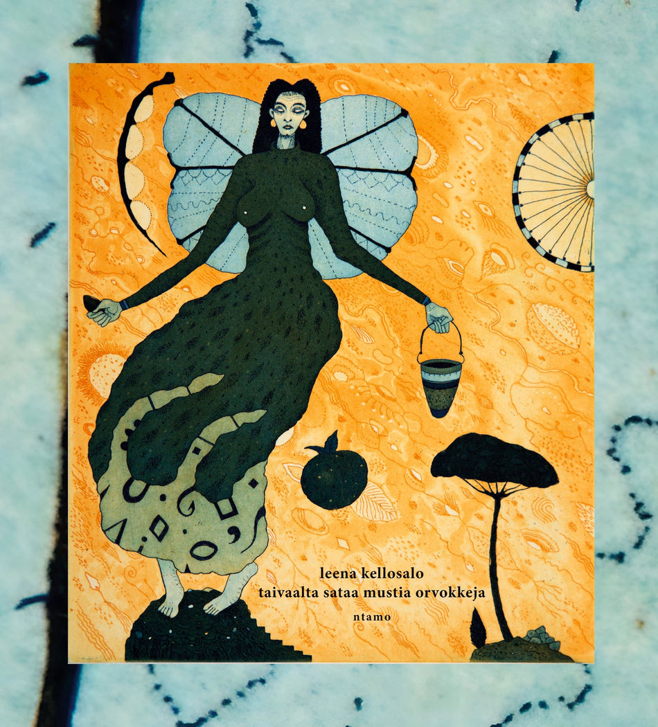 TAIVAALTA SATAA MUSTIA ORVOKKEJA on tunnustetun kirjailijan neljäs runokirja. Teos sukeltaa unen hurjiin syövereihin ja hehkuviin avaruuksiin. Säkeissä liikutaan Viipurin ja Tampereen maisemissa, sukuhistoriassa, elokuvissa ja haltioituneissa näyissä.